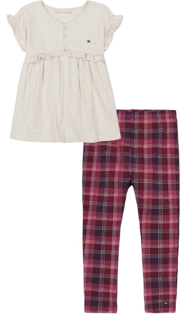Conjunto por 2 piezas de algodón marca Tommy Hilfiger: 1 leggins a cuadros + polo